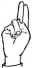На ћирилици написано БУДИМИР ЛАЛОШЕВИЋ састоји се из 16 слова [?]. Исписано ћириличном једноручном азбуком за глувонеме: